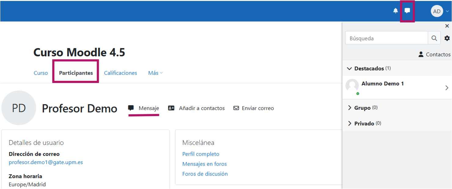 - Message from the Participants section or the messaging system.
