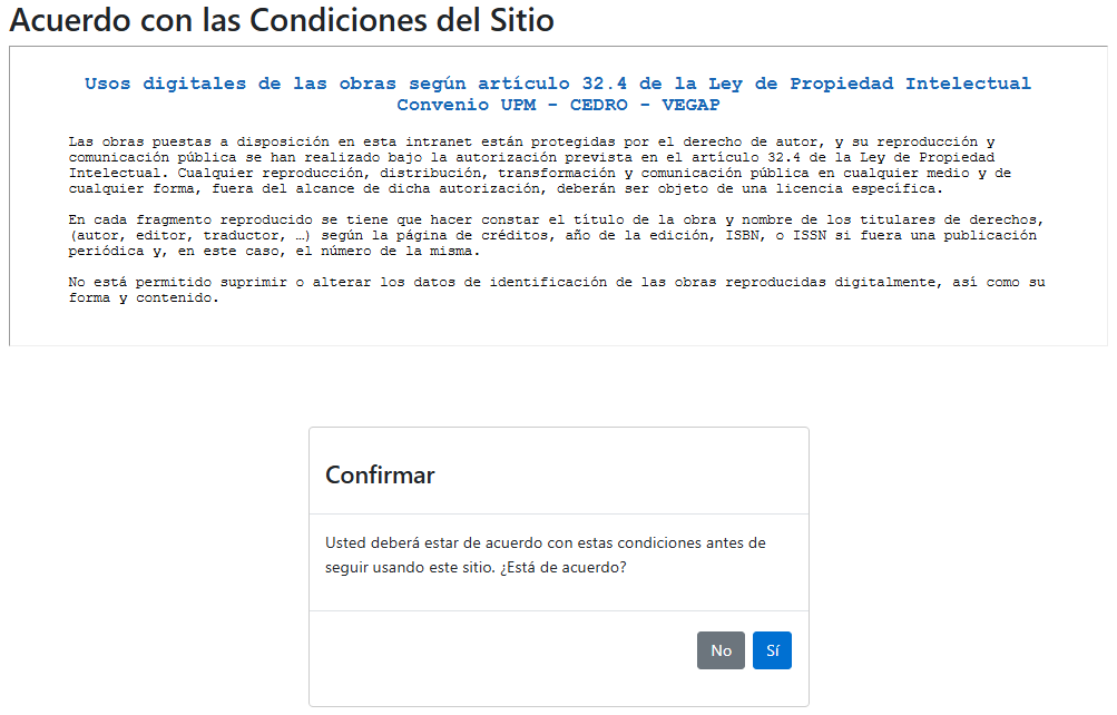 Antes de ver las asignaturas se deben aceptar las condiciones del sitio. Si no aparecen las condiciones o la ventana para confirmar, probar desde un ordenador.
